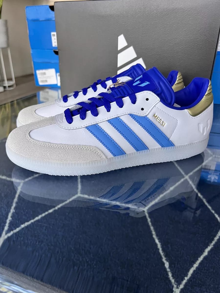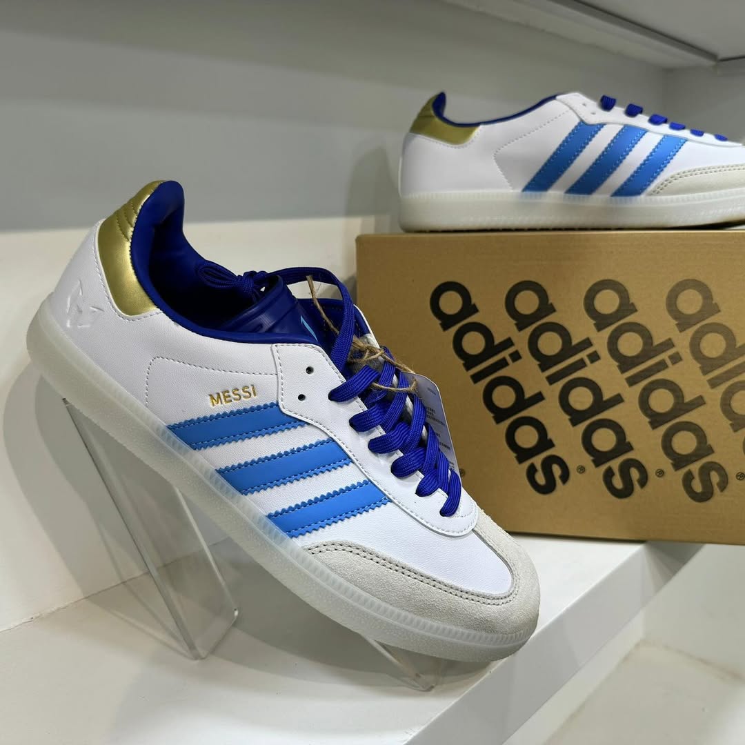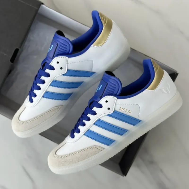 The Adidas Samba x Lionel Messi celebrates the iconic silhouette with a touch of football royalty. This special edition combines the classic Samba design with unique details inspired by Lionel Messi, making it a must-have for fans and sneaker enthusiasts alike. Experience timeless style and a nod to greatness with the Adidas Samba x Lionel Messi.