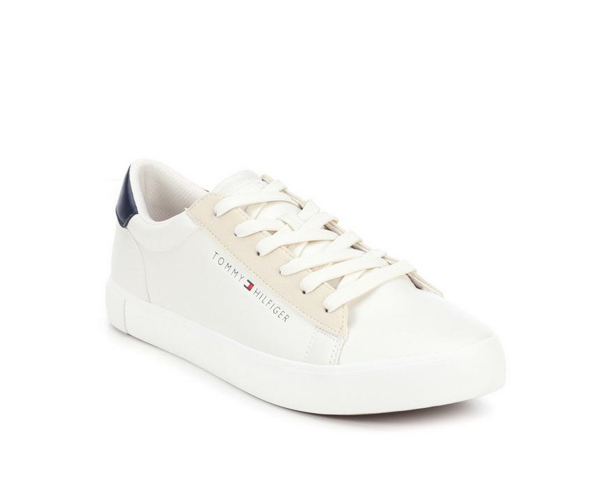 Redefining the classic court silhouette, this sneaker blends crisp white leather with soft cream suede overlays around the eyelets for a subtle, multi-textured look. The iconic navy heel tab, accented with refined Tommy Hilfiger branding, adds a touch of signature sophistication to its minimalist and clean design. It is a versatile masterpiece of "preppy-cool," perfectly balanced to elevate everything from tailored office trousers to your favorite weekend denim.